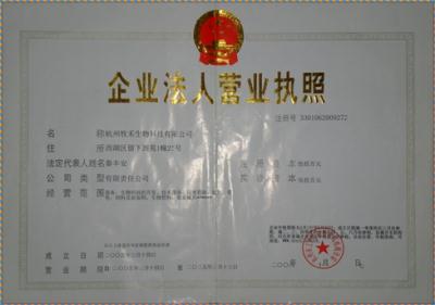 公司荣誉 杭州牧禾生物科技公司,以最优质的农产品,全力打造产、供 、销一条龙服务,来满足消费者的市场需求。在此,一贯支持我们的各级领导、团队的辛勤付出及广大消费者拥护,表示衷心感谢!我们将以最优质的农产品和一流的服务,来满足更多消费者的需求! 证书名称 照片 发证机关 发证时间 企业法人营业执照 杭州市西湖工商分局 2005年3月